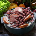 Feijoada is the national dish of Brazil. It is a smoky beef, pork, and beans stew that is usually served with rice. Pictured above is a version of feijoada that includes sausage and black beans.