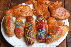Guaguas de pan, also known as bread babies, are sweet breads shaped into what resembles a baby swaddled into a blanket. It is a traditional Ecuadorian custom to have these along with colada morada for the Day of the Deceased.