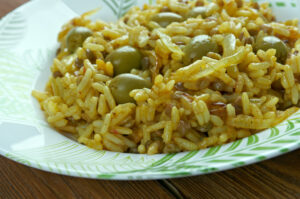 Arroz con gandules is a combination of rice, pigeon peas and pork, cooked in the same pot with Puerto Rican-style sofrito. This is one of the signature rice dishes of Puerto Rican cuisine.